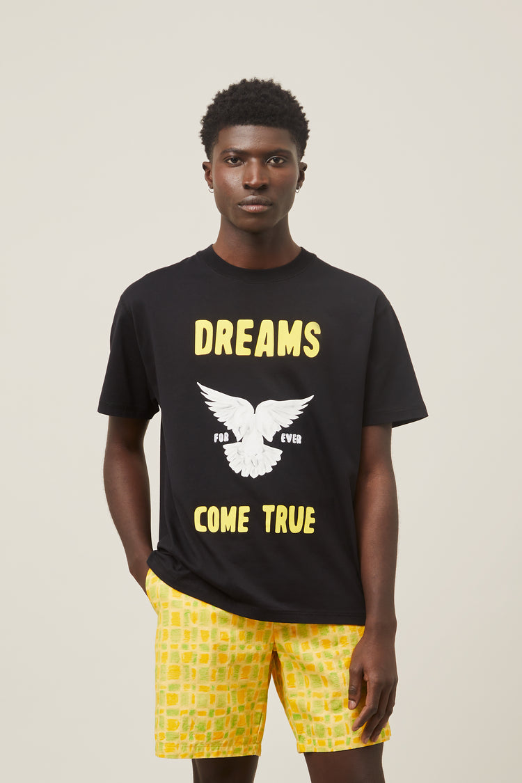 The DCT "Dreams Come True" T-Shirt offers a boxy fit made from soft cotton jersey fabric, delivering both comfort and style. Featuring bold printed artwork and intricate embroidered details at the front, it carries a powerful message with a refined touch. A perfect blend of bold expression and effortless wear, the DCT "Dreams Come True" T-Shirt is a reminder that anything is possible