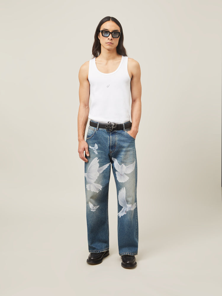 The Freedom Doves Denim by 3.Paradis features a baggy fit with five-pocket styling and a zip-fly closure, offering a relaxed yet refined silhouette. Printed Freedom Doves and dove-shaped rivets bring a rebellious, symbolic touch to the classic denim design. Designed for the individual who dares to break free, the Freedom Doves Denim is a testament to both refined artistry and untamed freedom.