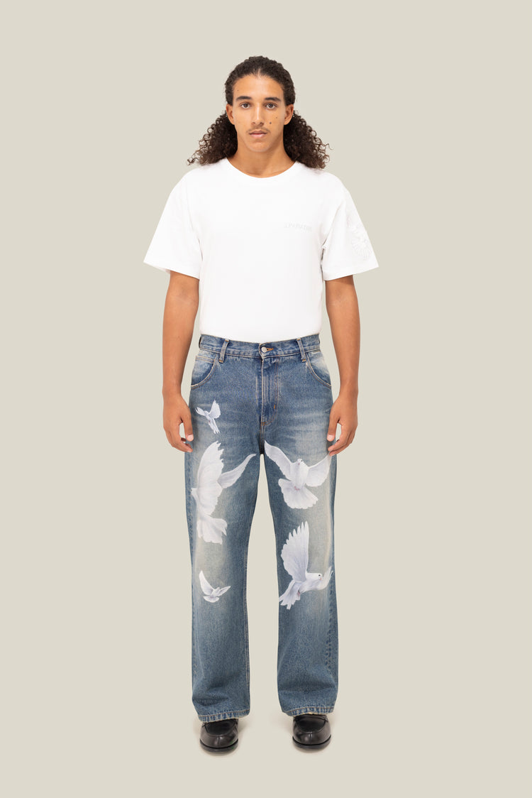 The Freedom Doves Denim by 3.Paradis features a straight fit with five-pocket styling and a zip-fly closure, offering a relaxed yet refined silhouette. Printed Freedom Doves and dove-shaped rivets bring a rebellious, symbolic touch to the classic denim design. Designed for the individual who dares to break free, the Freedom Doves Denim is a testament to both refined artistry and untamed freedom.