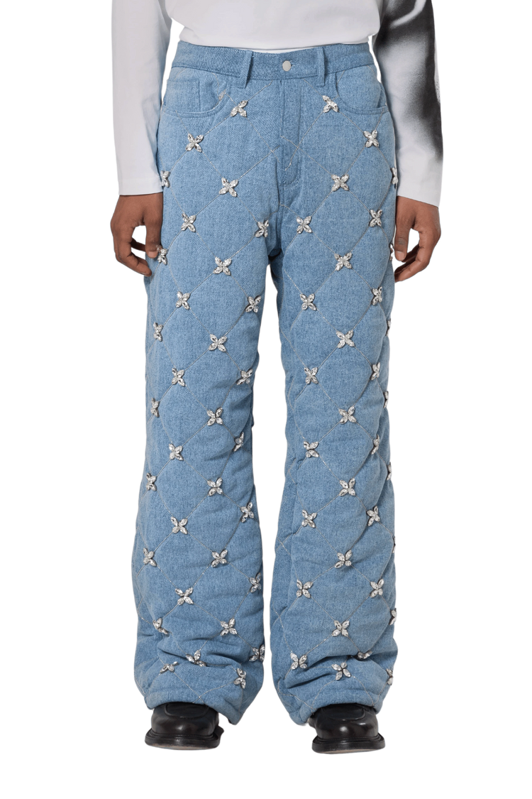Diamond Quilted Swarovski Crystal Denim Jeans