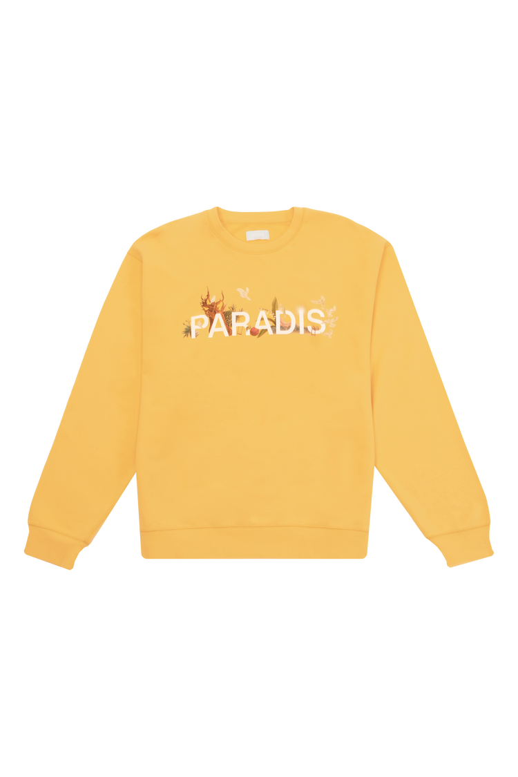 A new play on the Paradis logo, the Leila crewneck depicts the 'Paradis' design on the front of this yellow cotton blend sweater.