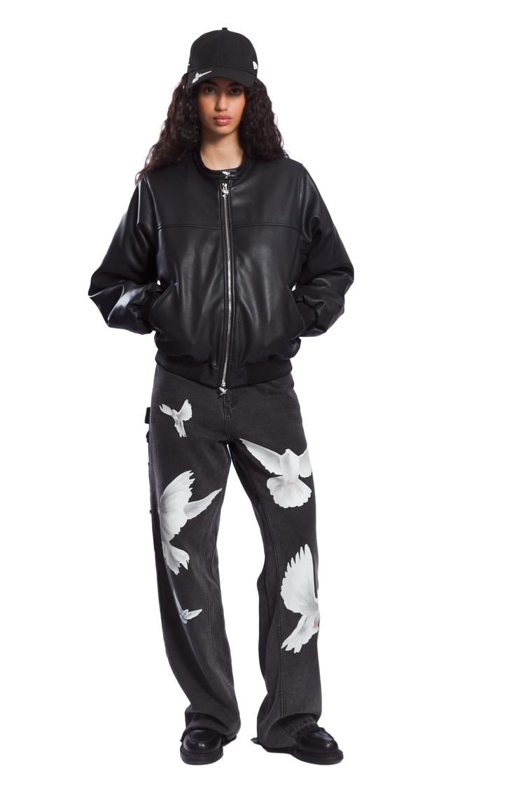 Simplicity at its finest, this ribbed cuff Miro vegan leather bomber jacket is a refined outwear piece.