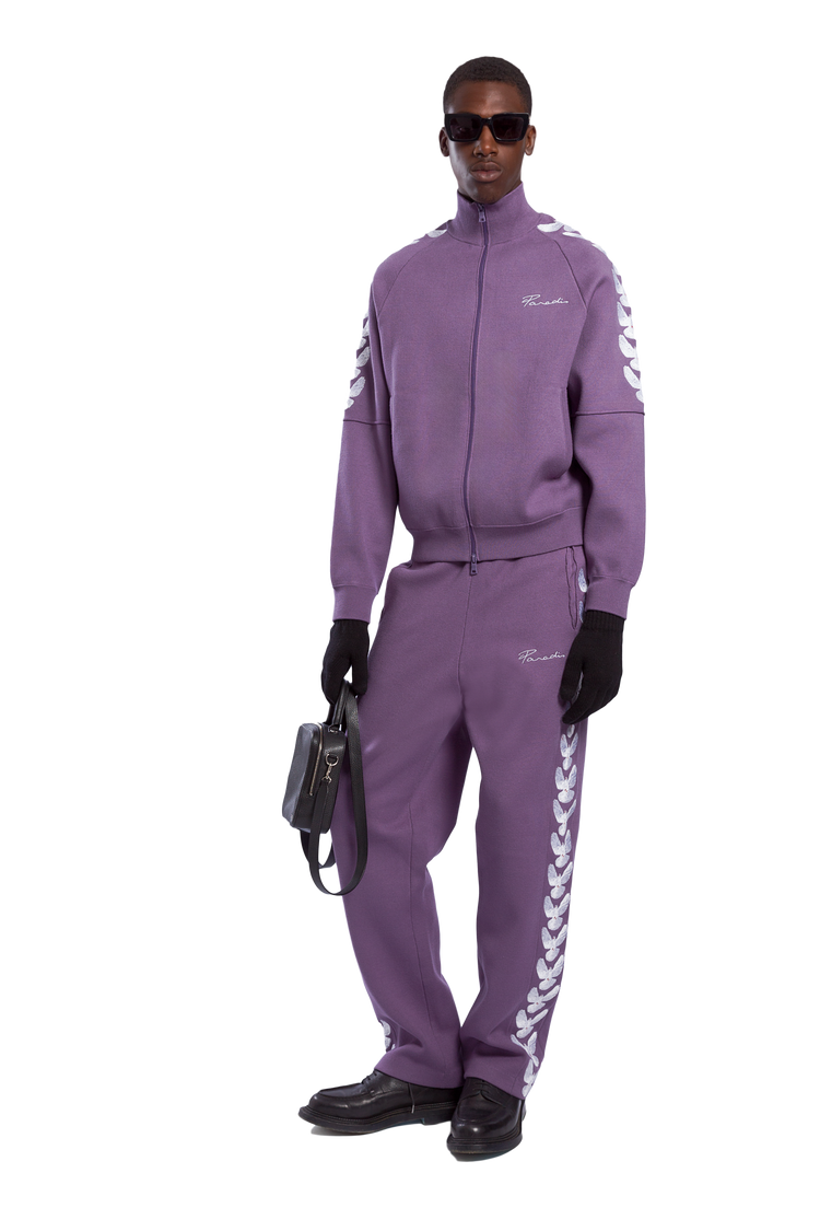 Blending contemporary with vintage sportswear influence, the Penn track pants are engrained with 3.PARADIS' design technique. The classic bird eye knit construction is inspired by tracksuits from the 90's while the 'Unity Doves' embroidery represents the evolution of a classic vintage staple with present day design details.