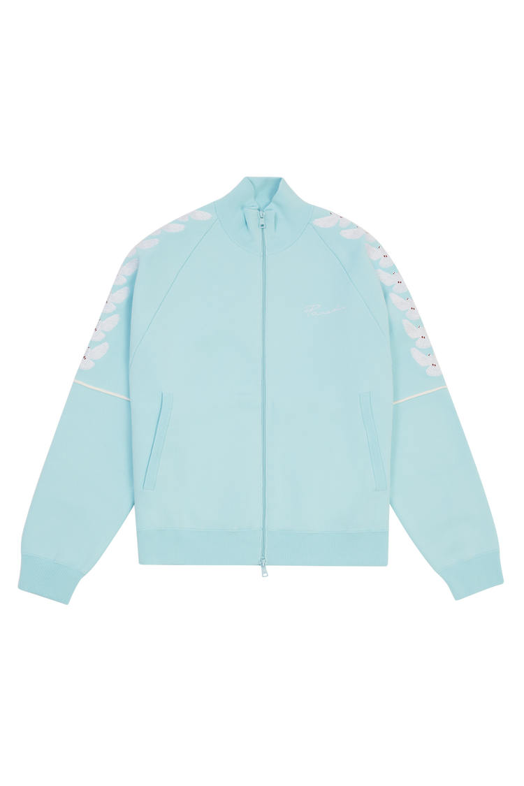 With our newly introduced staple, the 'Doves in Unity' Embroidered Track Jacket is reintroduced in a more casual imported cotton fabric. Celebrating unity, the sky blue and white colour blocked accents features our Paradis hand autographed embroidered logo with our 'Unity Doves' embroidery down the side arms and represents the evolution of a classic vintage staple mixed with present day design details. All while advancing 3.PARADIS' mission to share with the world our inspiration of freedom through unity.